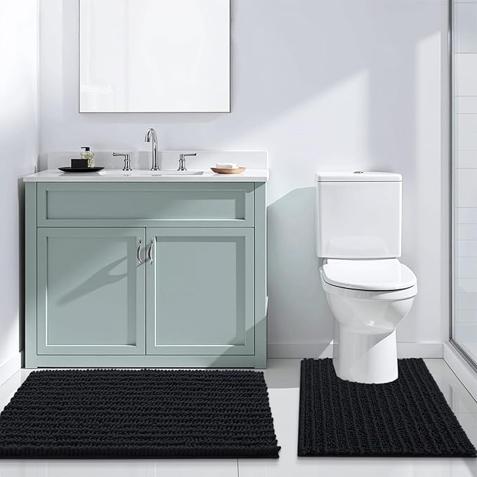 Arotive Luxury Chenille Bathroom Rug Mat, Extra Soft Thick Absorbent Shaggy Bath Rugs, Non-Slip Machine Wash Dry, Plush Bath Mats for Bathroom, Shower and Tub, 40x32, Black