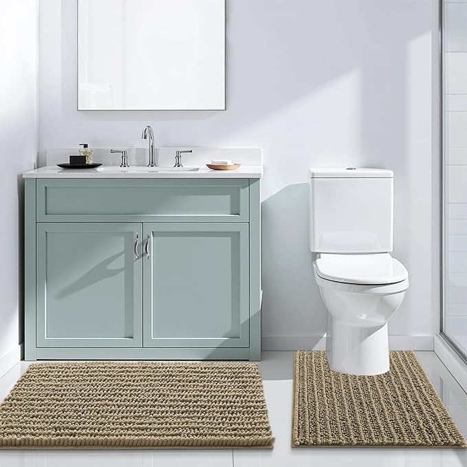 Arotive Luxury Chenille Bathroom Rug Mat, Extra Soft Thick Absorbent Shaggy Bath Rugs, Non-Slip Machine Wash Dry, Plush Bath Mats for Bathroom, Shower and Tub, 40x32, Camel