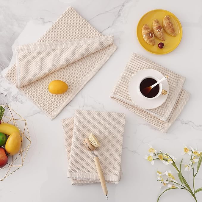 Homaxy 100% Cotton Oversized Waffle Weave Kitchen Dish Towels, Ultra Soft Absorbent Quick Drying Cleaning Towel, 20 x 28 Inches, 4-Pack, Beige