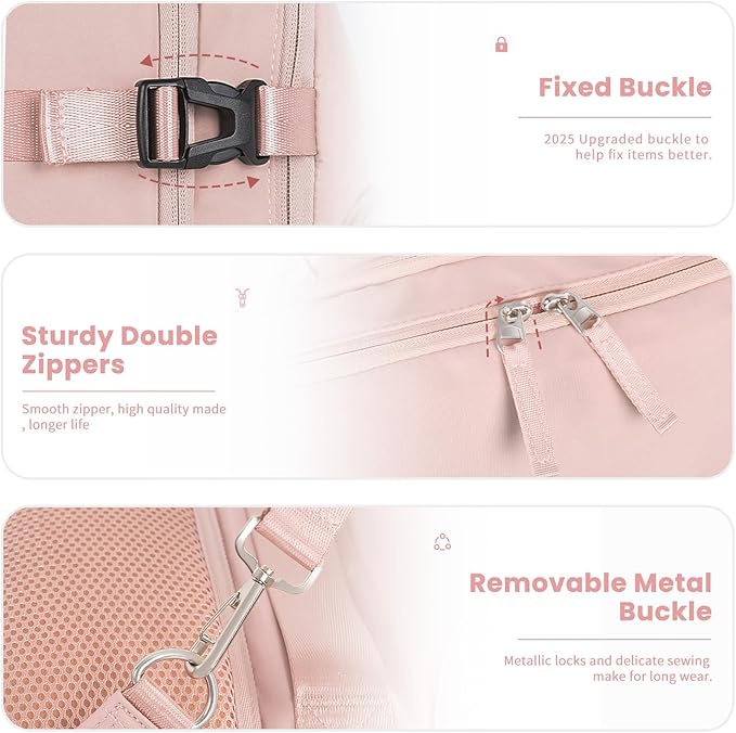 - Easier Packing: Features with 180 degree opening and enough depth of the interior space, this traveling backpack enables you to pack it almost like a suitcase. And the side buckles will be helpful to compress the backpack when you overpack it