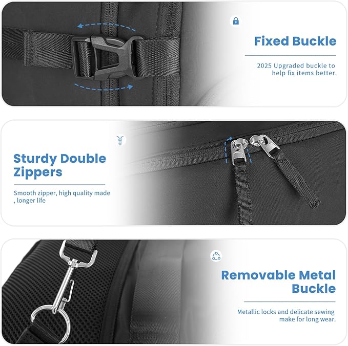 - Easier Packing: Features with 180 degree opening and enough depth of the interior space, this traveling backpack enables you to pack it almost like a suitcase. And the side buckles will be helpful to compress the backpack when you overpack it