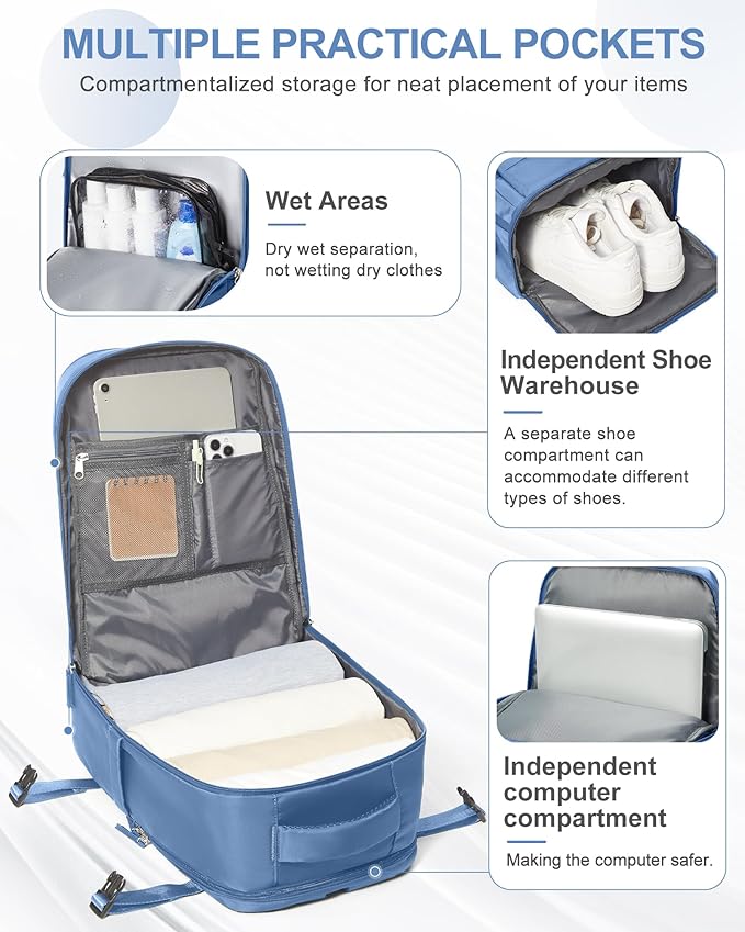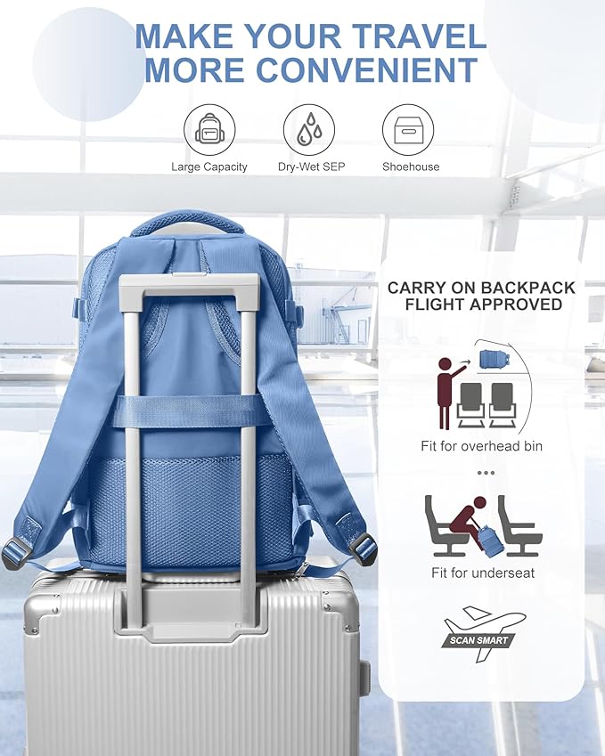 coowoz Travel Backpack for Women Man Carry On Backpack Mochila de Viaje Waterproof Teacher Personal Item Backpack Travel Bag Essentials Rucksack Airplane Accessories Must Haves Sky Blue Small