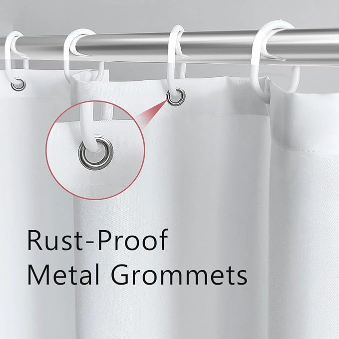 - 【Easy Install】 Each package provides one 60” Width x 72” Length polyester shower curtain and 12 plastic hooks.there are metal grommets on the top, and the shower curtain can be hung on the pole quickly by using curtain rings.when you want to clean or replace the shower curtain, it can be removed easily.