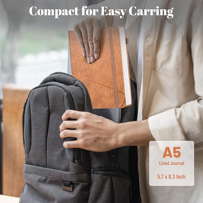 - 𝐕𝐞𝐠𝐚𝐧 𝐋𝐞𝐚𝐭𝐡𝐞𝐫 𝐁𝐨𝐮𝐧𝐝 𝐉𝐨𝐮𝐫𝐧𝐚𝐥:The cover features a tree growth ring pattern, lightly debossed onto cruelty-free vegan leather. The textured cover adds visual interest and sets it apart from plain designs. The tree ring pattern represents personal growth, accomplishments, and the challenges along the way. 5.7 × 8.3 inches, compact and easy to carry