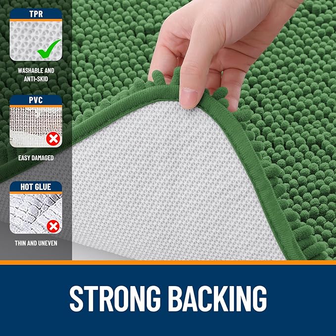 - Long-lasting and Sturdy - Our bath mat features a textured rubber backing for stability, surpassing the durability of other brands using PVC or hot glue. Unlike traditional materials, our TP Rubber Backing is engineered to withstand repeated washes without compromising its integrity. WARNING: Water under the bathroom rug can cause it to slip. Keep bottom of the bath rug dry!