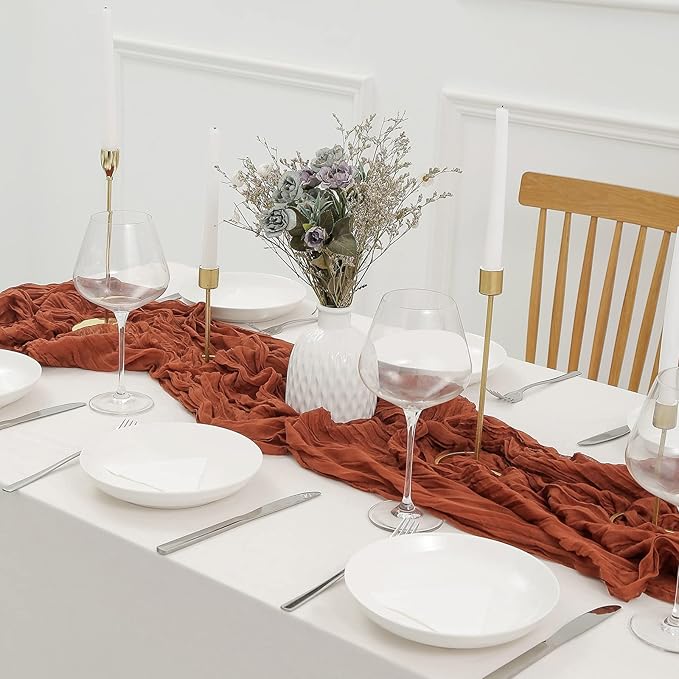 - VERSATILE USAGE: Ideal for rustic-themed celebrations, this cheese cloth runner adds a bohemian flair to your table settings for occasions like Thanksgiving, weddings, bridal showers, baby showers (including woodland-themed ones)