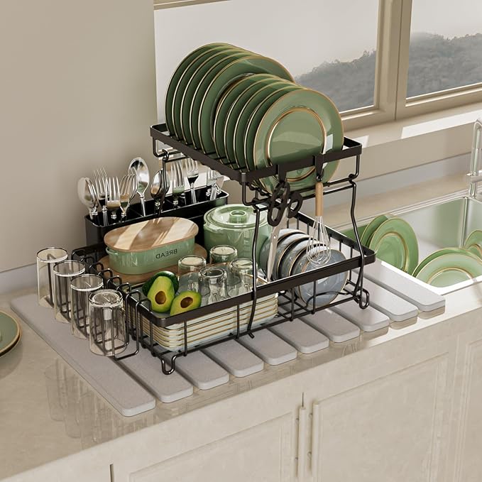 - Foldable Design: It measures 23.5 x 15.4in. Note: It shipped folded and will need to be opened upon receipt.When not in use, it can be rolled up and stored to save space.It can also be used as a large stone dish drying mat for kitchen counter,plant mat,entryway mat,pet bowl mat, and poolside mats.