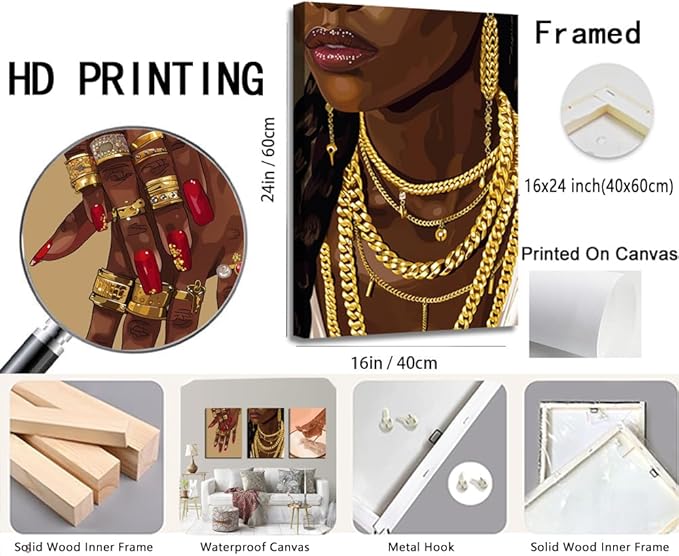 - High-quality material: These 3 pieces of black women wall decor are printed with high quality ink on premium canvas, the canvas posters are tightly stretched and bound in solid wood frame to ensure long-lasting brilliance. You can hang it conveniently after receiving it.