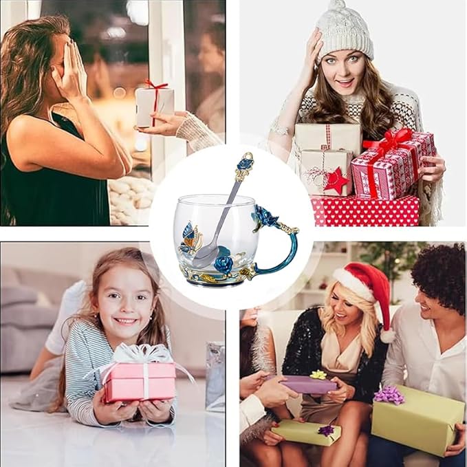 - Fancy Tea Cup:The handmade enamel glass mug has a style with butterfly and blue rose flower designs.No fading as time passed.The visual appeal makes this product for any home,restaurant and office.And the flower tea cup with spoon can be used for hot or cold tea,coffee,milk,juice,soda water and vegetable juice or some other daily uses