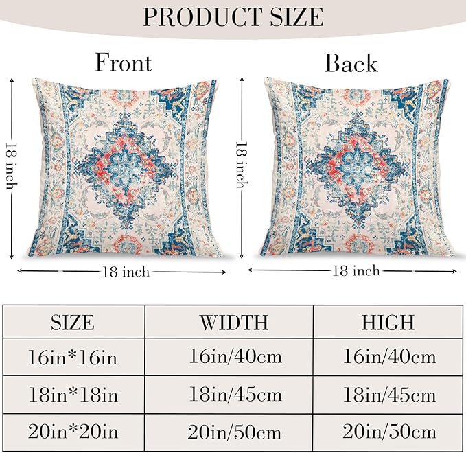 - Boho Decor Aesthetic Design: The throw pillow covers has a Bohemian Carpet Pattern Design Pattern;The reversible pattern pillow covers 18 x 18 inch can match almost any other bohemian or house decor in your home, like that beautiful boho rug in your living room, you need these throw pillow covers to decorate your home and make it look more integrated and beautiful