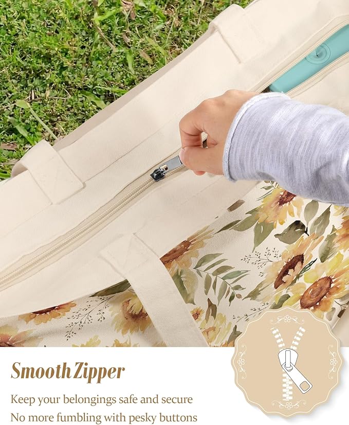 Large Tote Bag for Women - Canvas Tote Bag with Zipper Aesthetic Reusable Shoulder Bag for Gym, Travel, Work