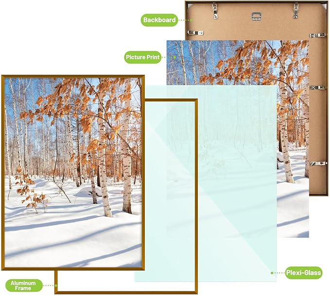 - Material: Brush Bronze Aluminum Finish Frame with Plexiglass Front, That Gives a Clear View of Your Pictures, Preserve Your Artwork For a Long Time