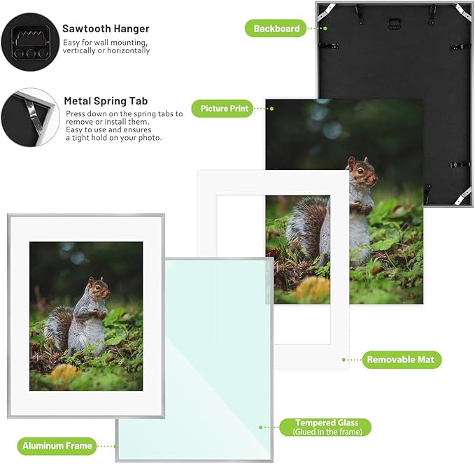 - Easy to Use: Spring Retention Clips& Corner Spring Clips on the backboard are easy for loading photos and hold picture tightly. Sawtooth Hangers are for wall display (Vertically or Horizontally)