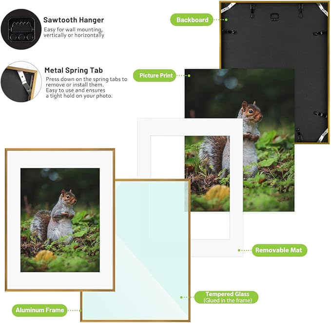 - Can Display:Each 14x18 frame includes a removable Mat (opening size: 10.5"x13.5"), fits for 11 x 14 picture print (with Mat) or 14 x 18 poster (without Mat)