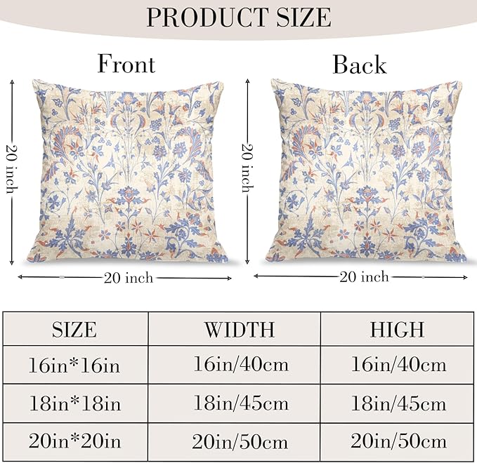- Material Package:The boho floral throw pillows covers is composed of a soft;2 pieces of 20 x 20 inch(50 x 50 cm) pillow covers;However, because the fabric is resilient,please allow 0.2 - 0.6 inches of size error when cutting and sewing,It does not affect normal use