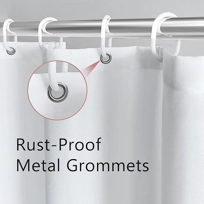 - 【Easy Install】 Each package provides one 60” Width x 72” Length polyester shower curtain and 12 plastic hooks.there are metal grommets on the top, and the shower curtain can be hung on the pole quickly by using curtain rings.when you want to clean or replace the shower curtain, it can be removed easily.
