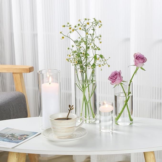 - Multiple Uses: The clear glass vase is not only suitable for fresh or dried flowers like roses, daisies, carnations, and tulips, but also serves as a candle holder (for pillars or floating candles) and even as a small fish tank. It can hold liquid without leaking