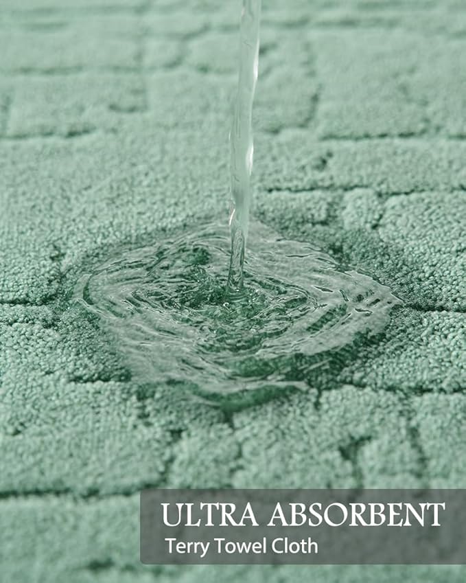 AMOAMI-Bath Mat-Absorbent Quick Dry Bathroom Floor Mats-Washable Rubber Backing Bath Mats for Bathroom Rugs Fit Under Door-Bath Rug for in Front of Sink Bathtub Shower Room, Moss 24''x48''