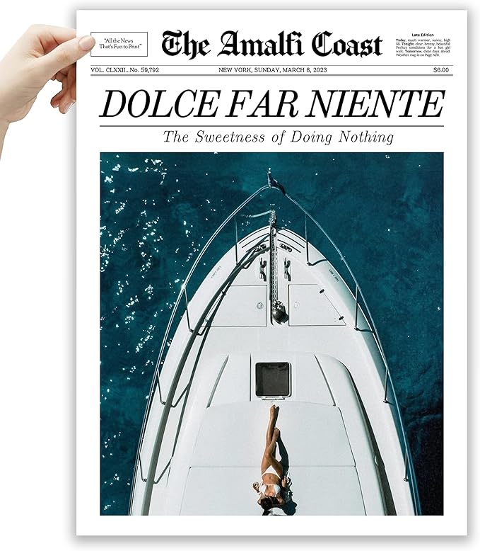 - Stylish Newspaper Design: Features a chic "Dolce Far Niente" (Sweet Idleness) headline with an Italian summer theme, capturing the relaxed and glamorous essence of la dolce vita.