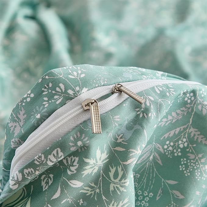 - ★【Zipper&Ties】--The garden style sage green flower print duvet cover with hidden zipper closure and 4 corner ties, make it easy and efficient to fix and protect duvet/comforter from staining. Pillowcase enclosure prevents the pillow insert from spilling out.