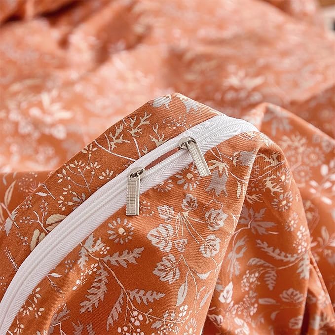 - ★【Zipper&Ties】--The garden style caramel flower print duvet cover with hidden zipper closure and 4 corner ties, make it easy and efficient to fix and protect duvet/comforter from staining. Pillowcase enclosure prevents the pillow insert from spilling out.