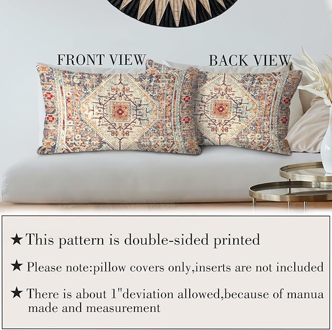 - Boho Decor Aesthetic Design: The throw pillow covers has a boho floral carpet pattern design pattern;The reversible pattern pillow covers 12 x 20 inch can match almost any other boho or house decor in your home, like that beautiful boho rug in your living room, you need these throw pillow covers to decorate your home and make it look more integrated and beautiful