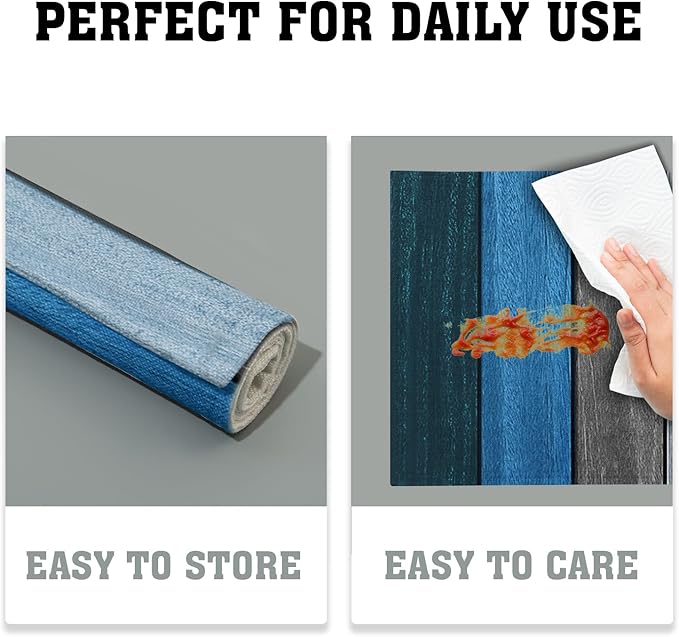 Giwawa Rustic Wood Placemats Set of 4- Navy Blue Grey Wooden Board Linen Place Mat 12x18 Inch- Farmhouse Country Style Washable Heat Resistant Table Mats for Kitchen Dining Cabin Decor
