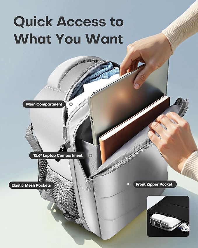 HOTOR Travel Backpack - Flight Approved Travel Bag for Men and Women, Carry on Luggage for 15.6" Laptop and Travel Essentials for Work, Business, Weekender, College 11.8"x7.9"x17.3" (Grey)