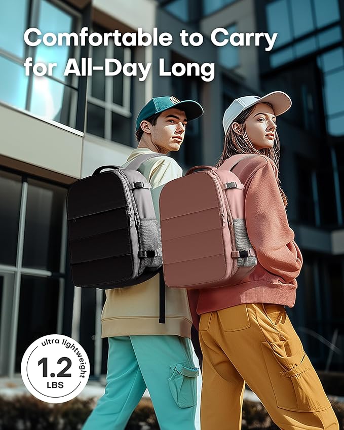 - BORN FOR TRAVEL: HOTOR carry-on travel backpack features a flight-approved size, which fits comfortably in overhead bins or under seats. With a 1.4lb weight, a breathable back panel, and padded shoulder straps, this backpack is lightweight and comfortable to carry even all day long. Besides, the luggage strap can attach the bag securely to the suitcase, freeing your hands.