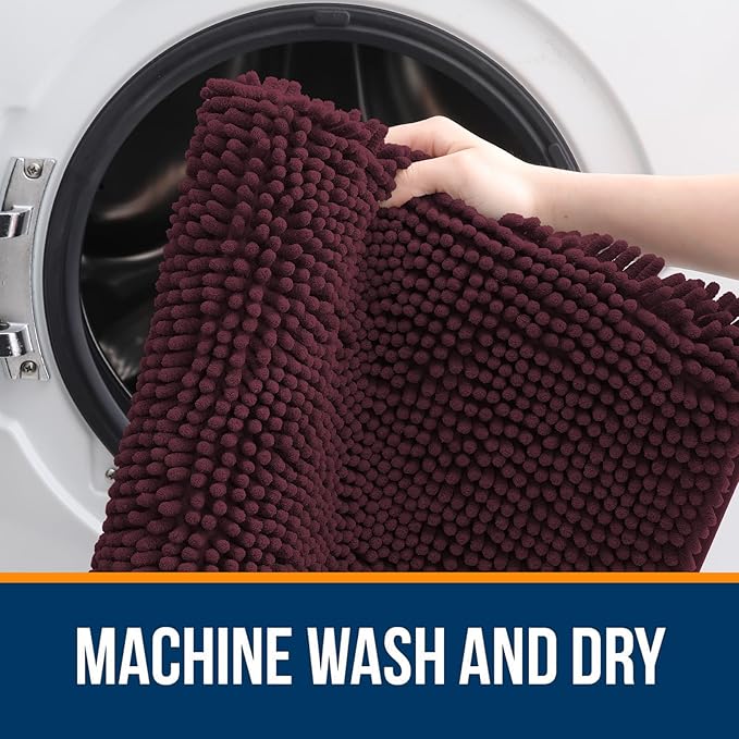 OLANLY Bathroom Rugs 44x24, Extra Soft Absorbent Chenille Bath Rugs, Rubber Backing Quick Dry, Machine Washable Bath Mats for Bathroom Floor, Tub and Shower, Home Decor Accessories, Black Cherry