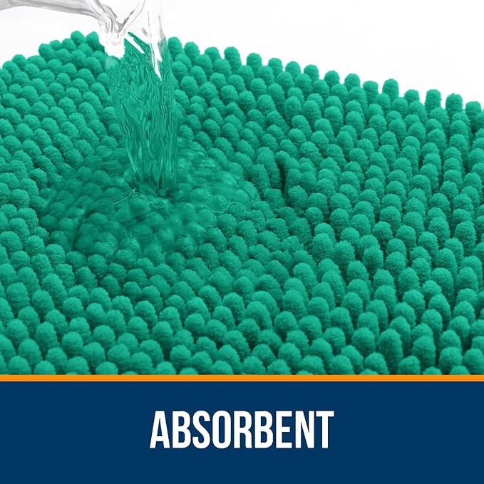 OLANLY Bathroom Rugs 24x16, Extra Soft Absorbent Chenille Bath Rugs, Rubber Backing Quick Dry, Machine Washable Bath Mats for Bathroom Floor, Tub and Shower, Home Decor Accessories, Emerald