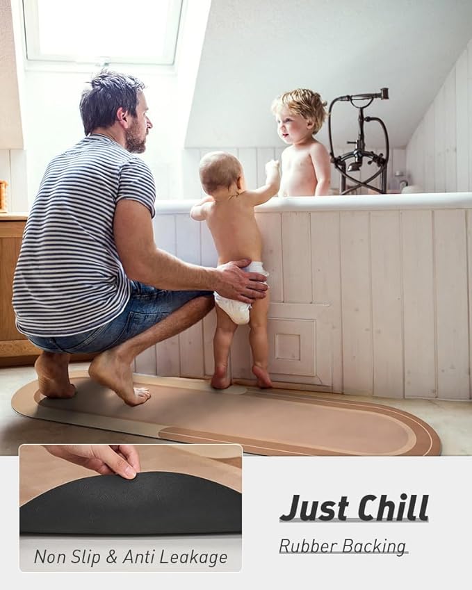- Super Absorbent & Stain Resistant: Innovative advanced nano porous PU leather surface can absorb dripping water instantly without leaving any watermarks or stains. Super absorbent bath mat in front of bathtub, shower door or sink to keep bathroom floor clean, dry and safe.