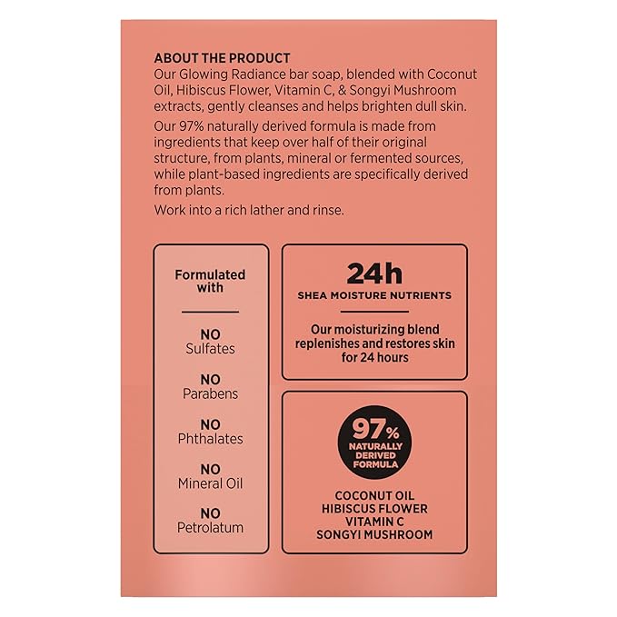 SheaMoisture Bar Soap Coconut and Hibiscus 4 Count Glowing Radiance Glowing Radiance bar soap with 24h shea moisture nutrients for Healthy, Glowing Skin 8 oz