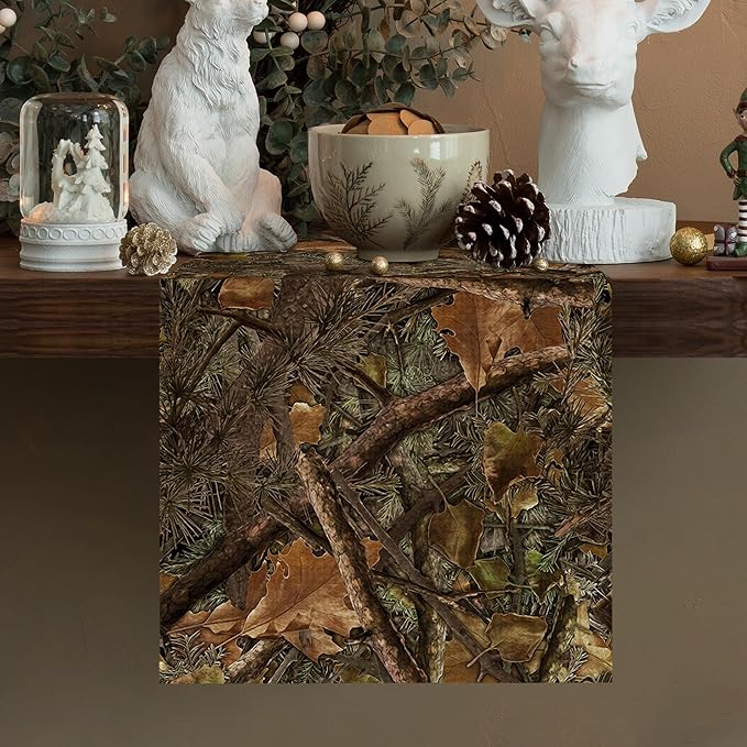Camo Table Runner Seasonal Spring Fall Kitchen Dining Linen Table Decoration for Indoor Outdoor Home Party Dinner 13x72 Inch