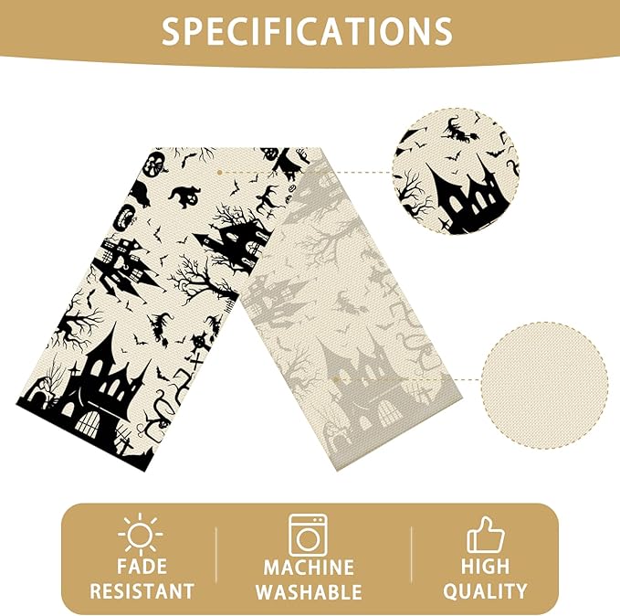 Halloween Burlap Table Runner Seasonal Spring Fall Kitchen Dining Linen Table Decoration for Indoor Outdoor Home Party Dinner 13x72 Inch