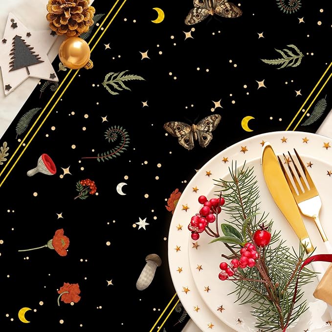 Moth Burlap Table Runner Seasonal Spring Fall Kitchen Dining Linen Table Decoration for Indoor Outdoor Home Party Dinner 13x72 Inch