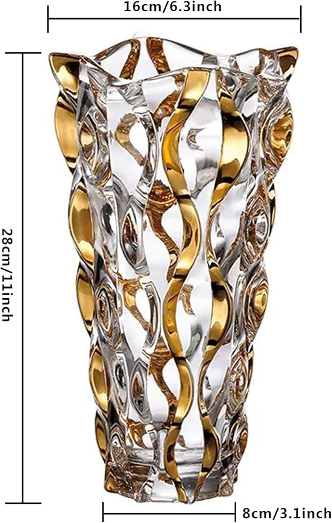 Hand Painted Gold Vase 11" Tall,Flower Vase Decor for Home Dining Table Living Room,Office Wedding Holiday Party,Handmade Decorative Flower Vase.