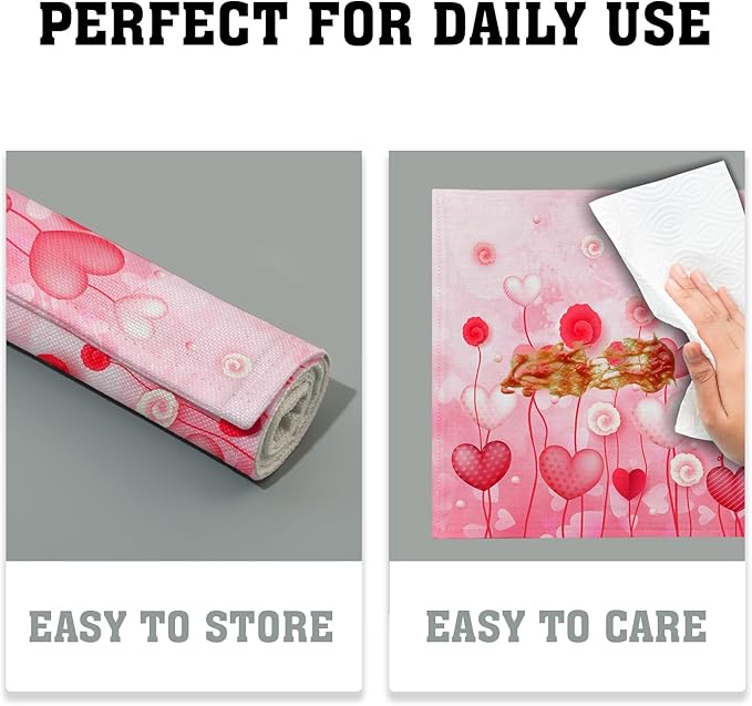 Giwawa Valentines Day Placemats Set of 4 12x18 Inch Red Love Hearts Flower Floral Decorative Place Mat Linen Heat Resistant Washable Table Mats for Kitchen Dining Holiday Wedding Anniversary