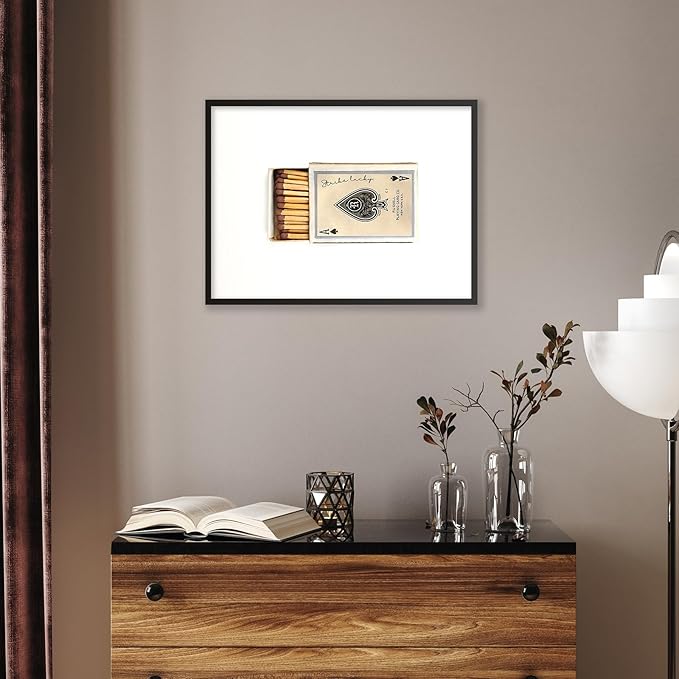 Retro Matches Poker Canvas Posters Vintage Ace of Spades Playing Cards Matchbox Wall Art 12x16 inch Black Framed Trendy Preppy Wall Decor Funky Aesthetic Prints for Living Room
