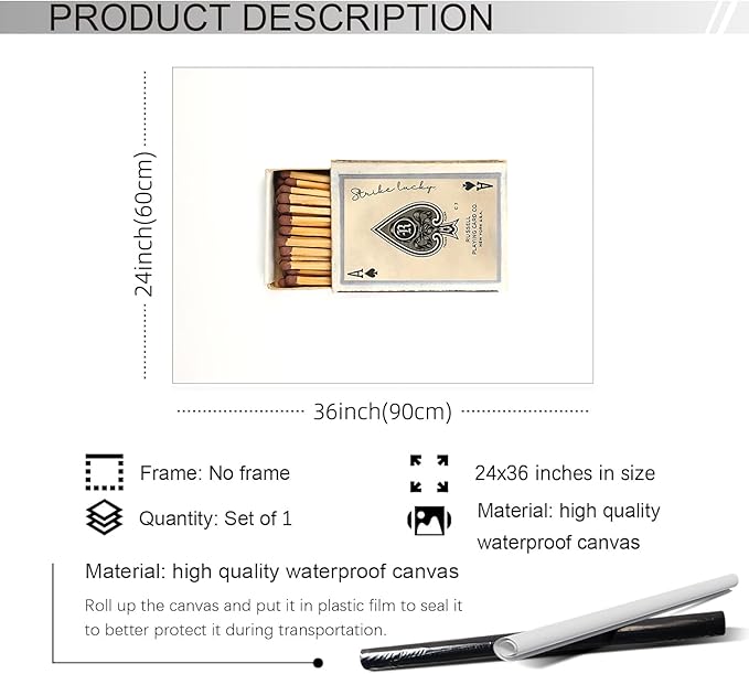XSCQ Retro Matches Poker Canvas Posters Vintage Ace of Spades Playing Cards Matchbox Wall Art Trendy Preppy Wall Decor Funky Aesthetic Prints for Living Room 24x36 inch Unframed
