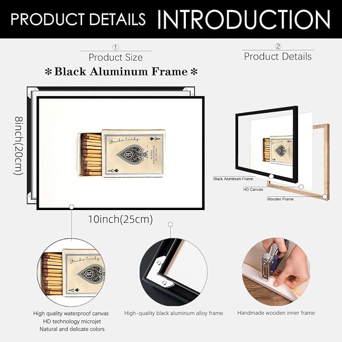 Retro Matches Poker Canvas Posters Vintage Ace of Spades Playing Cards Matchbox Wall Art 08x10 inch Black Framed Trendy Preppy Wall Decor Funky Aesthetic Prints for Living Room