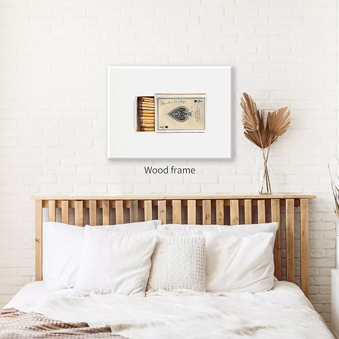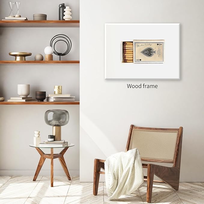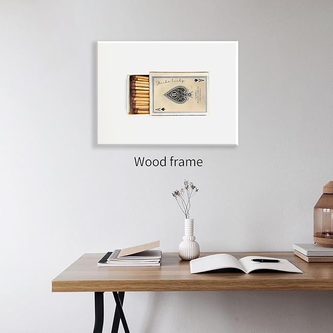 Retro Matches Poker Canvas Posters Vintage Ace of Spades Playing Cards Matchbox Wall Art 16x24 inch Framed Trendy Preppy Wall Decor Funky Aesthetic Prints for Living Room