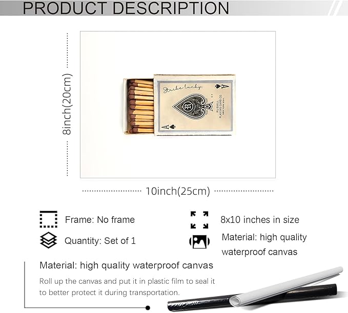 XSCQ Retro Matches Poker Canvas Posters Vintage Ace of Spades Playing Cards Matchbox Wall Art Trendy Preppy Wall Decor Funky Aesthetic Prints for Living Room 08x10 inch Unframed
