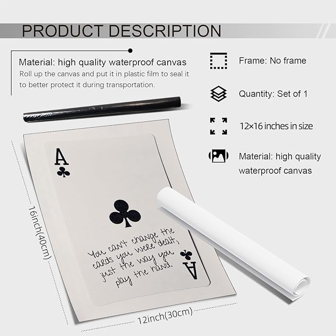 - Poker Wall Art:The trendy wall art size is 12x16inch ,not include frames. You to choose your preferred frames to showcase them.Assemble and install by yourself, fully enjoy the fun of DIY