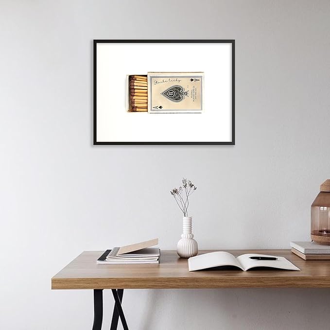 Retro Matches Poker Canvas Posters Vintage Ace of Spades Playing Cards Matchbox Wall Art 16x24 inch Black Framed Trendy Preppy Wall Decor Funky Aesthetic Prints for Living Room