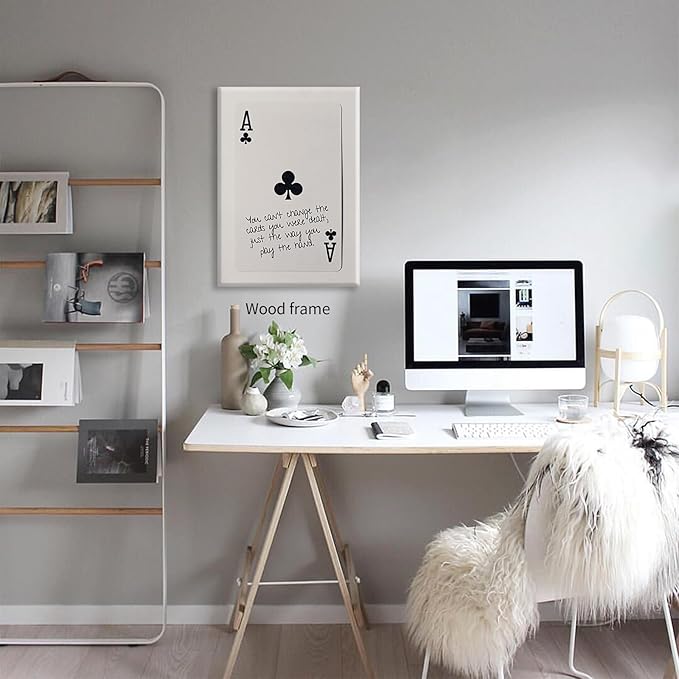 Funky Black and White Lucky Ace Poker Canvas Wall Art Funny Modern Preppy Playing Card Posters 24x36 inch Framed Trendy Minimalist Black Art Prints Painting Retro Aesthetic Wall Decor