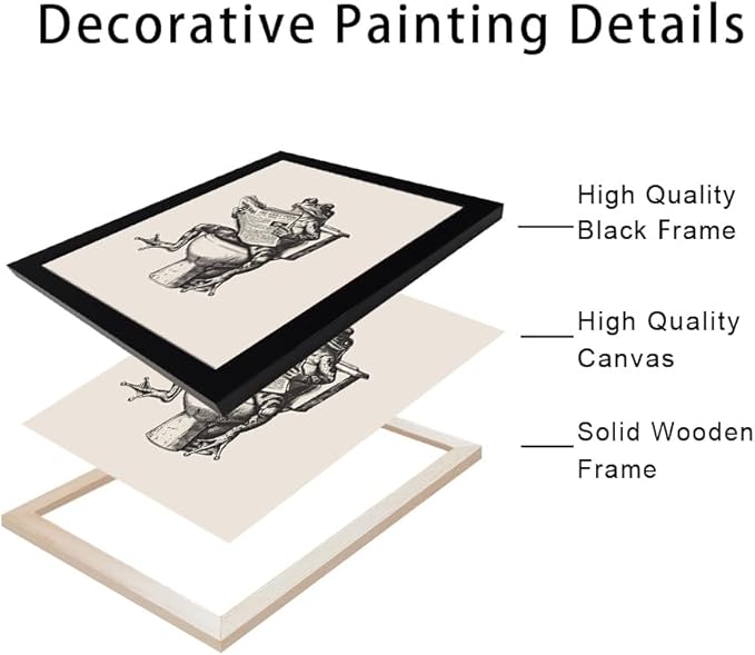 - FRAMED TOILET WALL ART SIZE: Black framed wall art by 11" x 14", funny humorous frog wall art is suitable for bathroom decor, toilet decor etc.