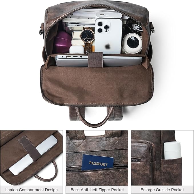 - 【High Quality Material】Backpack purse for women made of soft and durable faux leather and fabric lining,this leather backpack has a smooth and durable zipper closure,and each seam is reinforced for durability.The leather laptop backpacks features excellent water-resistant and moisture-proof properties, ensuring it remains in good condition even in humid environments