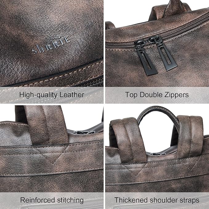 Shrrie 15.6 inch Laptop Backpack for Women,Large Leather Backpack Purse,Travel,Carry on,Water Resistant Casual Laptop Backpacks,College Backpack,Work Backpack for Women,Two-toned Coffee