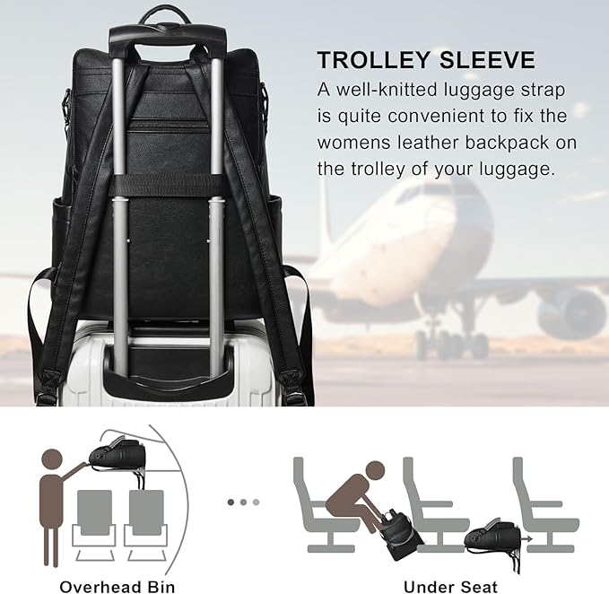 - 【Practical Design】Luggage strap of the laptop backpack for women is convenient for you to fix the womens backpack on the trolley of your suitcase when traveling.The travel backpack for women designed with multi functional pocket for 3-5 days travel necessities.laptop backpack women has main pocket,front zipper pocket,interior pocket,side pockets,laptop compartment,anti-theft pocket making your items organized